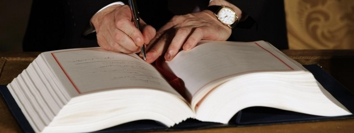 Le Premier ministre britannique Gordon Brown signe le traité de Lisbonne, le 13 décembre 2007, au Portugal.