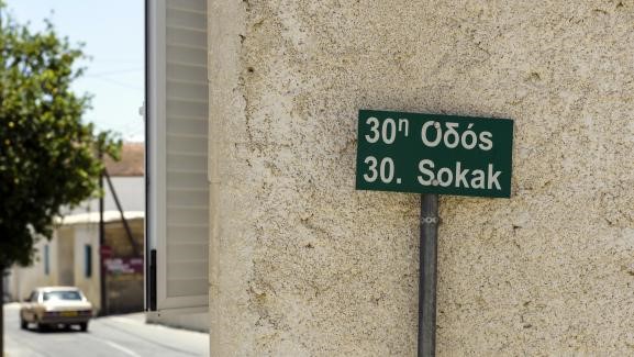 A Pyla (Chypre), où vivent des habitants issus des communautés grecque et turque, les panneaux sont rédigés dans les deux langues.
