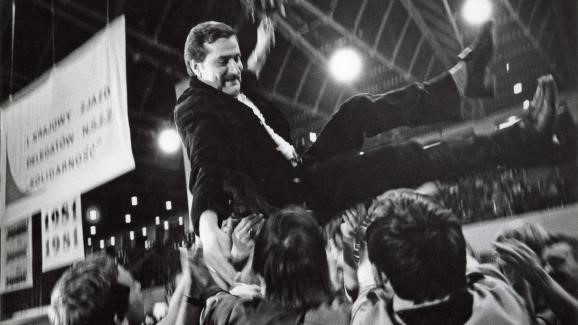 Walesa lors du premier congrès national des délégations de Solidarność, en septembre 1981, à Gdańsk, en Pologne. (MAXPPP)