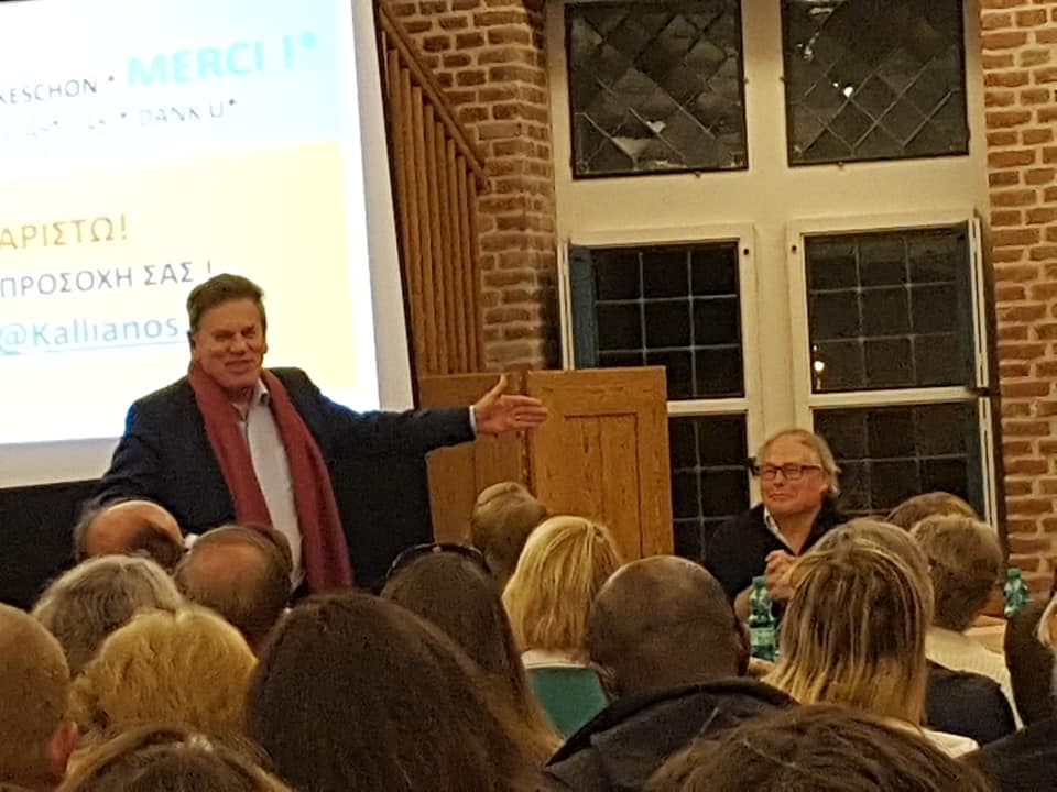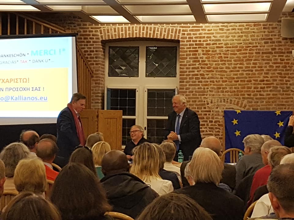 Monsieur Kallianos, également économiste, siège à la Commission Européenne depuis 1981, date de l’entrée de la Grèce dans l’U.E. Il a présenté sa vision sur l’avenir de l’Europe et de la Grèce, autour de son livre: « 30 ans + Des pas pour l’Europe ».